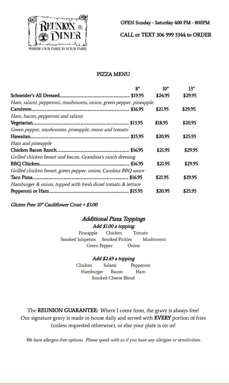 The Reunion Diner, operated by Annette John, is located in the Kronau Curling Club, 5 Main Street, Kronau.